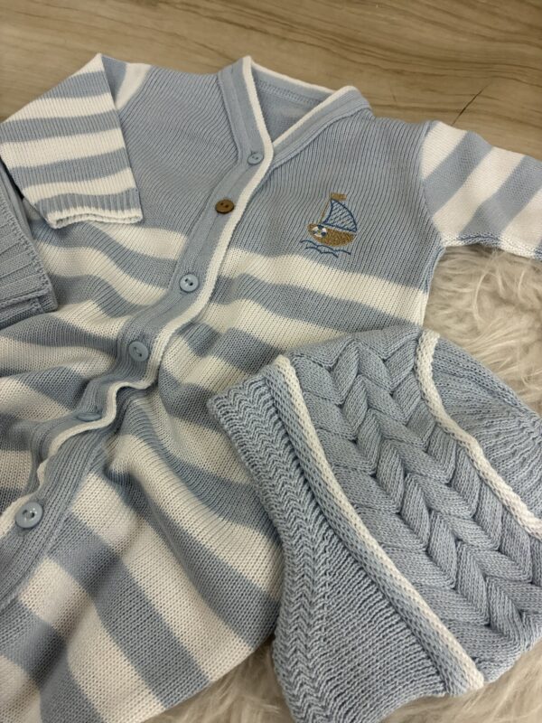 Macacão em tricô , com bordado de barquinho e abertura prática com botões