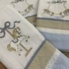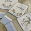 cada peça recebe bordado exclusivo com tema, acabamento em barra de tecido de algodão, garantindo um toque sofisticado e encantador.