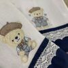 cada peça recebe bordado exclusivo com  tema, acabamento em renda delicada e barra em tecido de algodão, garantindo um toque sofisticado e encantador.